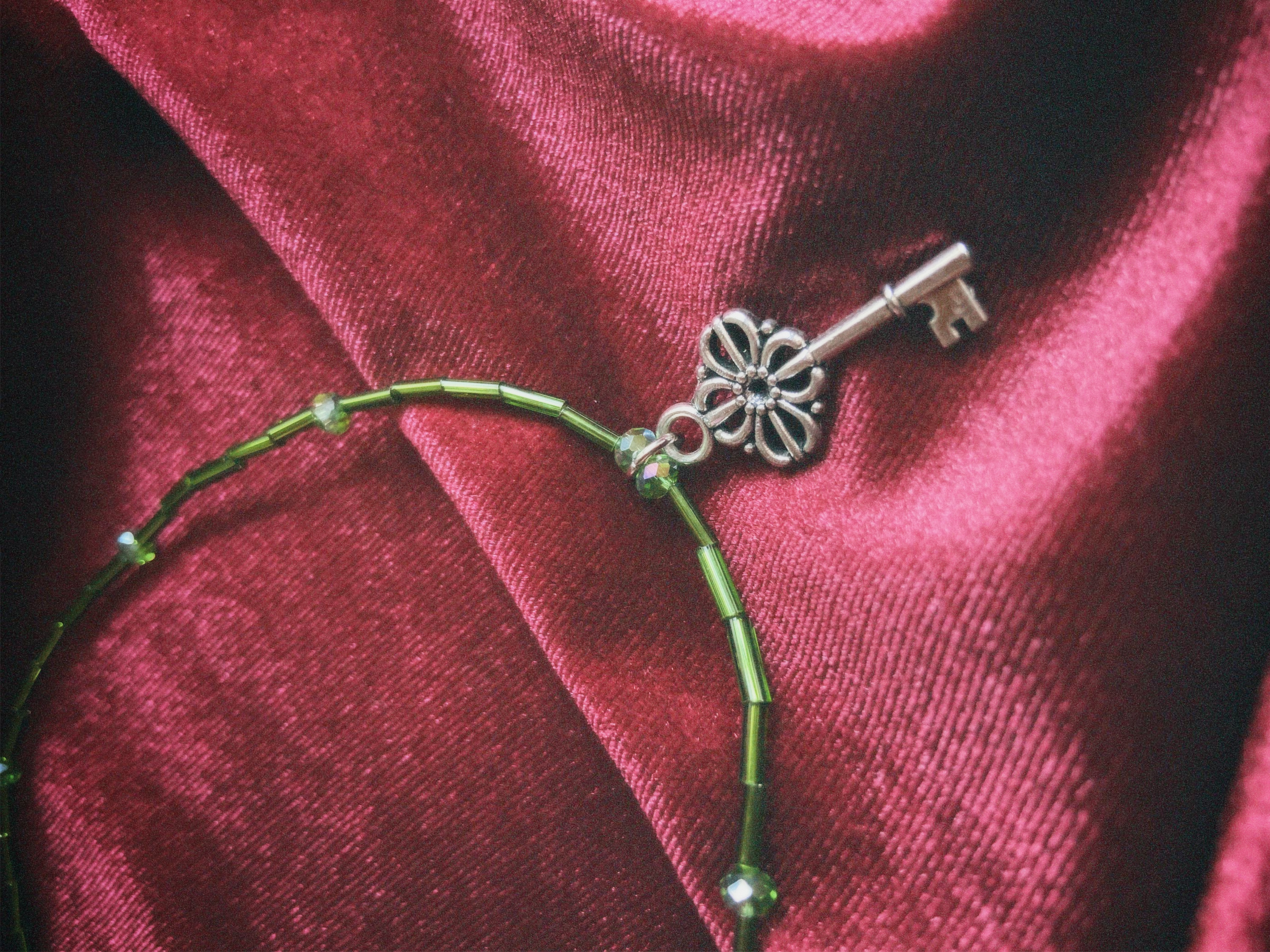 El Collar mistic es un accesorio hecho a mano con mostacillas en tonos verdes con dije plateado de llave. Su diseño único resalta la belleza de los detalles, convirtiéndolo en el complemento perfecto para cualquier ocasión.