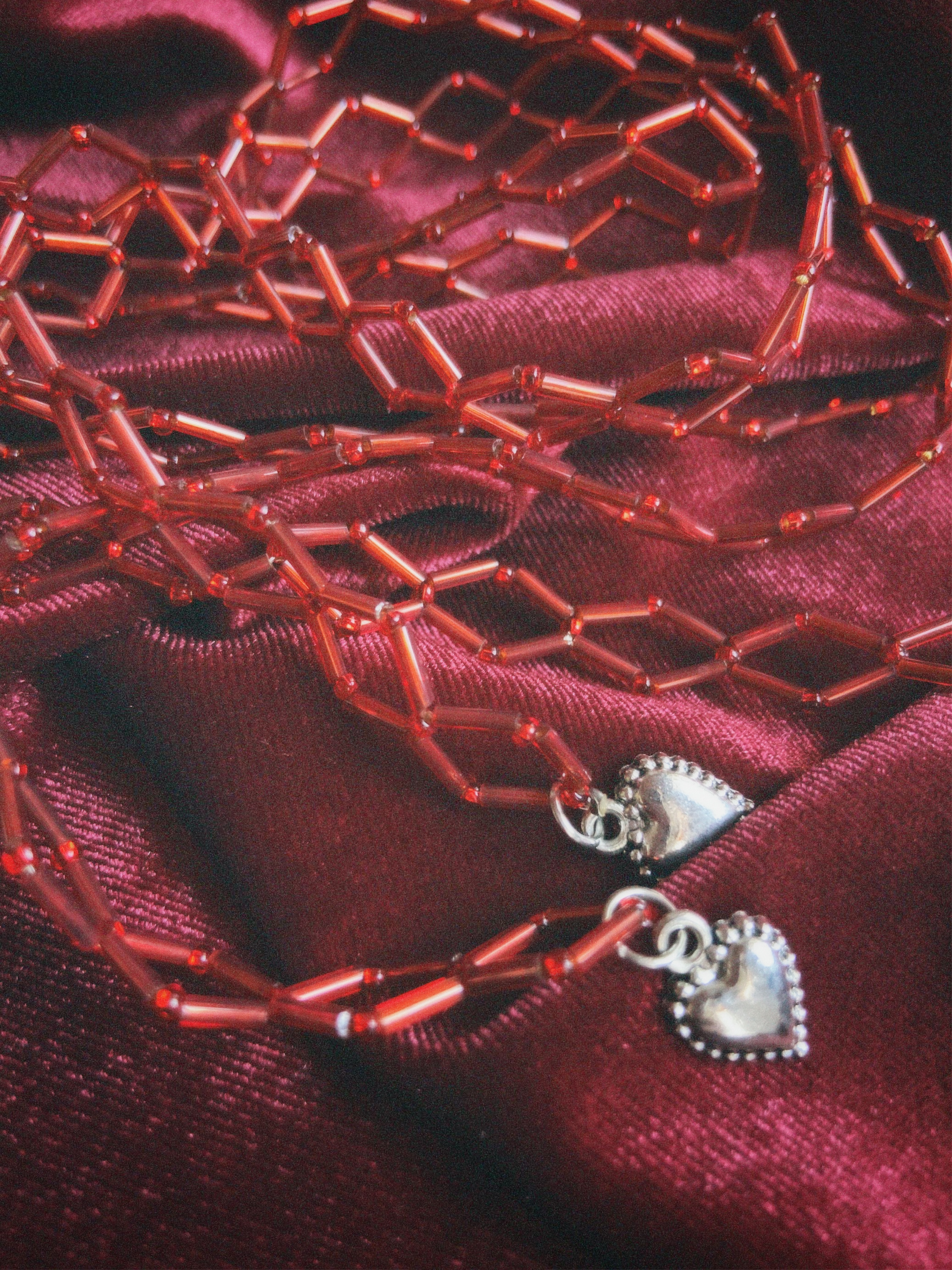 El Collar Multiuso es un acccesorio hecho a mano de canutillos rojos con dije de corazones plateados. Su diseño versátil te permite llevarlo de múltiples maneras, convirtiéndolo en el complemento ideal para cualquier ocasión. Un solo collar, infinitas formas de expresarte.