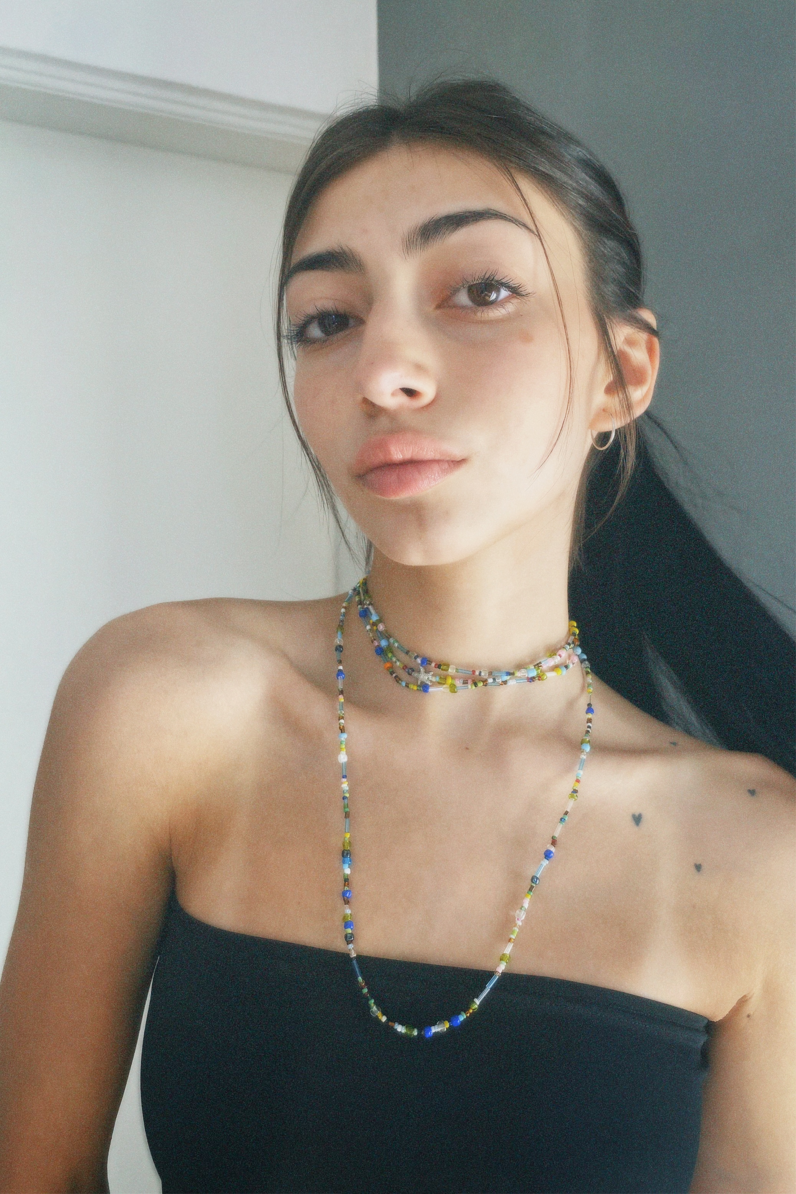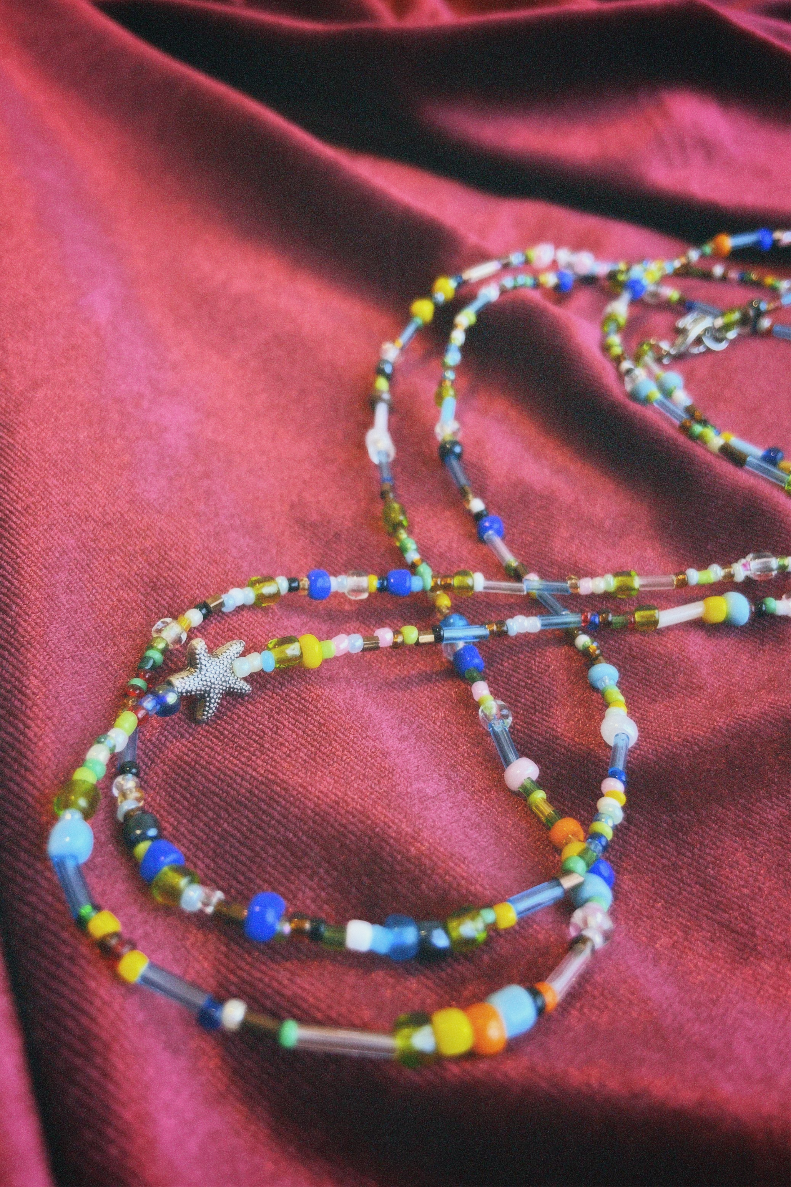 El Collar Multiuso es un acccesorio hecho a mano de mostacillas multicolor. Su diseño versátil te permite llevarlo de múltiples maneras, convirtiéndolo en el complemento ideal para cualquier ocasión. Un solo collar, infinitas formas de expresarte.