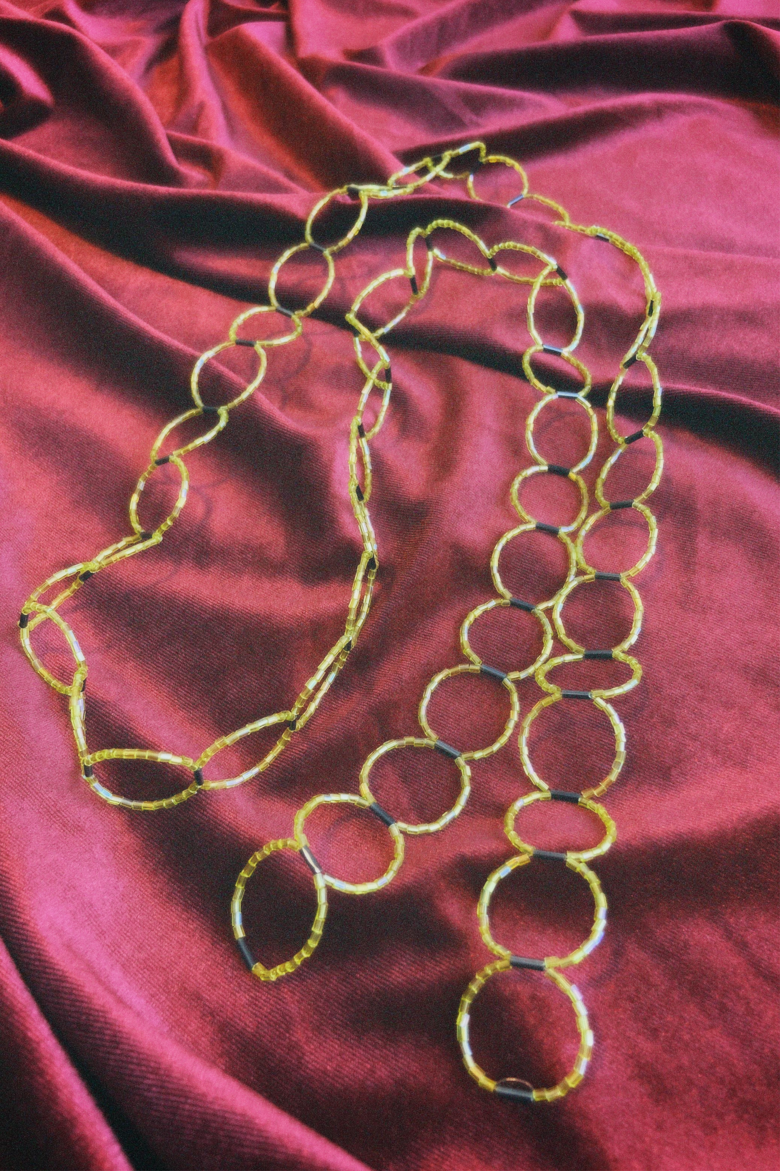 El Collar Multiuso es un acccesorio hecho a mano de canutillos verdes y detalles en negro. Su diseño versátil te permite llevarlo de múltiples maneras, convirtiéndolo en el complemento ideal para cualquier ocasión. Un solo collar, infinitas formas de expresarte.
